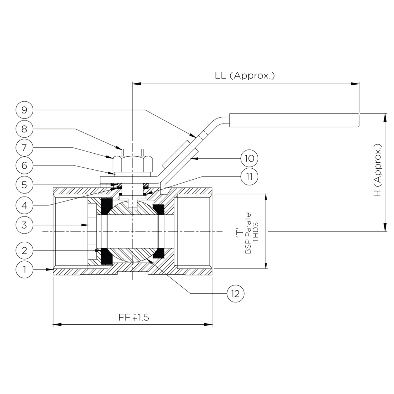 | 12 | Ball | 1 | Cast Stainless Steel | AISI A 351 Gr. CF8M |